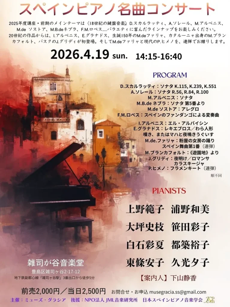 後援:NPO法人JML音楽研究所 日本スペインピアノ音楽学会